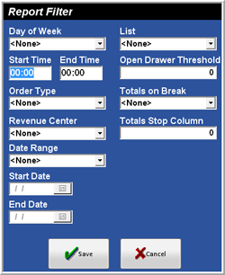 to be used for the report column (Sunday – Saturday). If “<None>” is