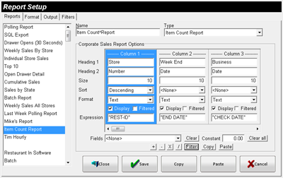 Menu Item’s Report Group.